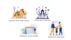 It’s necessary to set up boundaries with your kids, like when they can disturb you or what they need to do while you are doing your work. You can make some signboards that can be entertaining for your kids and they should follow the same.